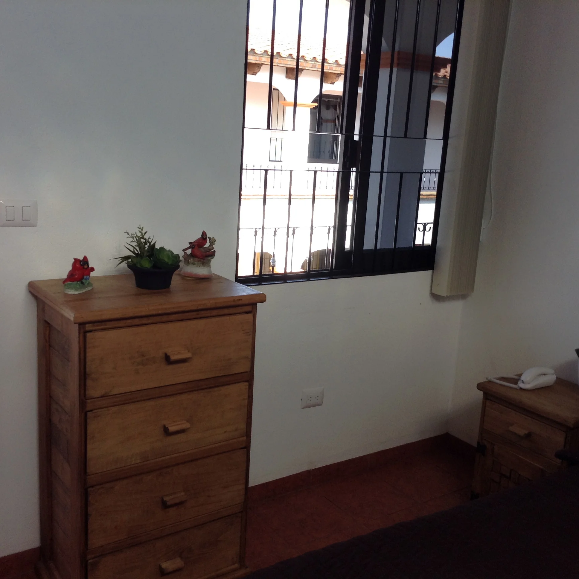 Nuestra habitación 116 es un cómodo espacio con cama matrimonial, mesa de trabajo, dos burós y cajonera, además puedes disfrutar de televisión por cable o de navegar en nuestro internet de alta velocidad de forma inalámbrica (200 Mb de ancho de banda). Tenemos servicio a tu habitación del amplio menú de la cafetería.