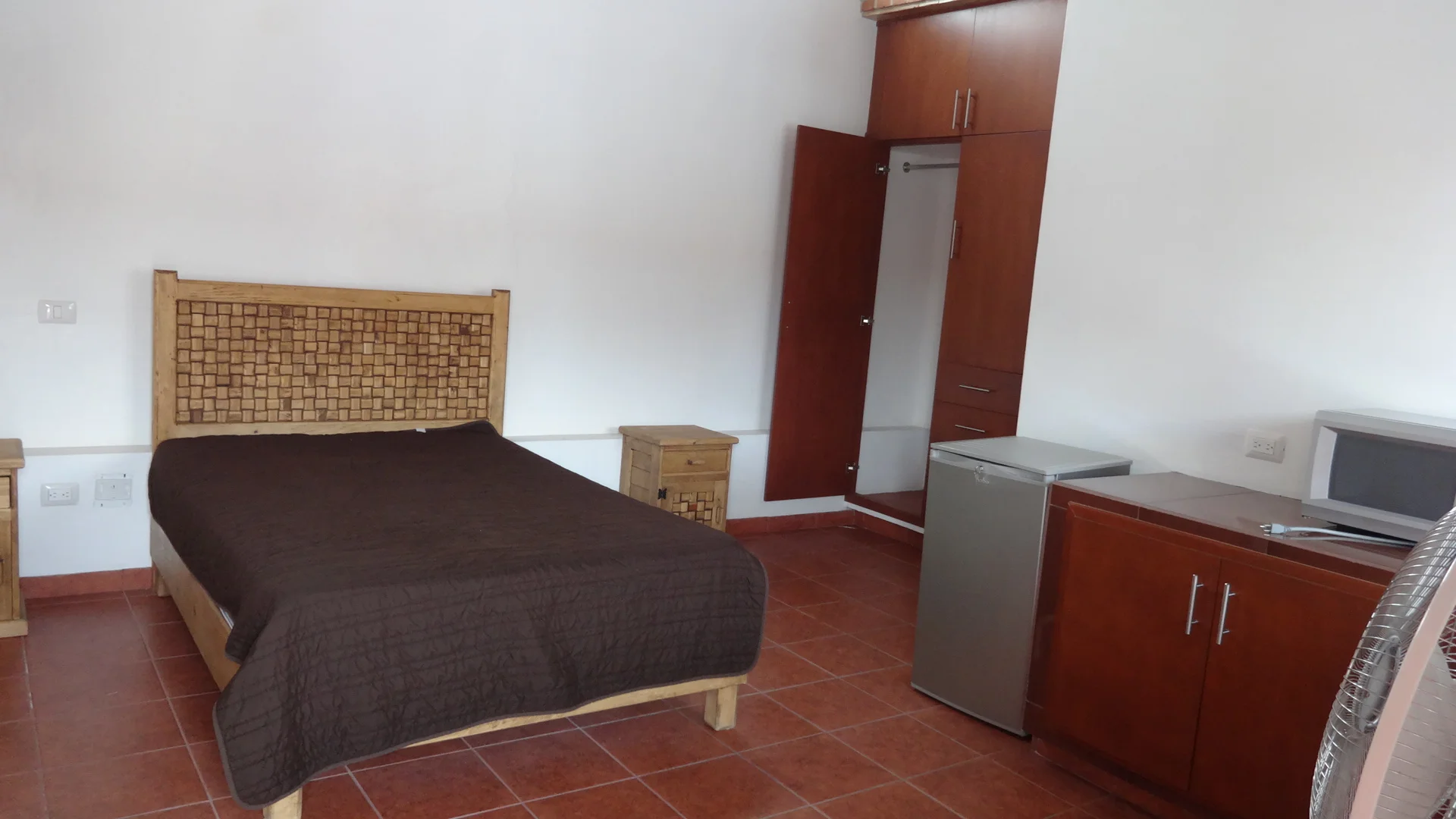 La habitación 109 es un espacio amplio con cama matrimonial, dos burós y cajonera, su amplio closet te permite guardar todo lo que necesitas en tu día a día y su cocineta te da la comodidad que requieres para prepararte un refrigerio o la cena mientras disfrutas de televisión por cable o navegas en nuestro internet de alta velocidad de forma inalámbrica (200 Mb de ancho de banda).